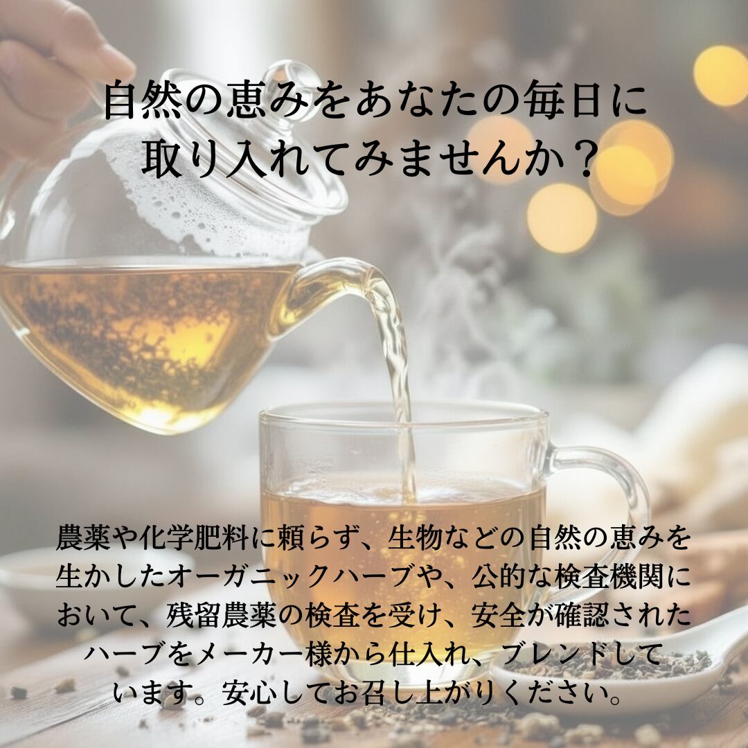 ◇ハーブティーとして販売がされているハーブはお薬ではなく、食品として扱われております。続けて飲むことによって必要なものを自然に補う、古くから親しまれてきた飲みものです。薬事法の法律のため効能や効果などの記載の表現が難しいことをご理解くださいませ。